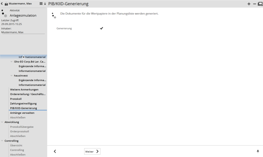Anlagesimulation - Erfassung - PIB/KIID-Generierung
