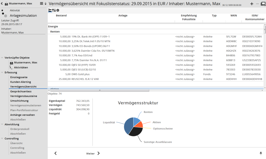 Anlagesimulation - Erfassung - Vermögensübersicht