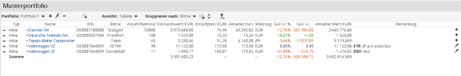 In der Ansicht "Tabelle" sehen Sie die enthaltenen Wertpapiere in der klassischen Listenform: