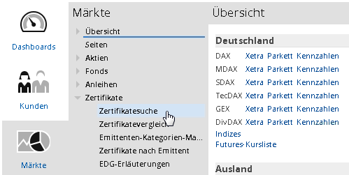 Wechseln Sie über das Bereichsmenü in den Bereich "Märkte".