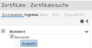 Wählen Sie dort im Navigator den Menüeintrag "Zertifikate", "Zertifikatesuche".