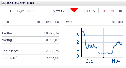 Hier werden Angaben zum Basiswert des Optionsscheins angezeigt: