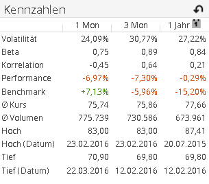 Im Bereich "Kennzahlen" finden Sie einen Auszug der wichtigsten Kennzahlen. Für die Zeiträume "1 Monat", "3 Monate" und "1 Jahr" sehen Sie im Einzelnen folgende Kennzahlen: