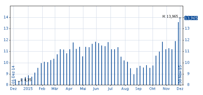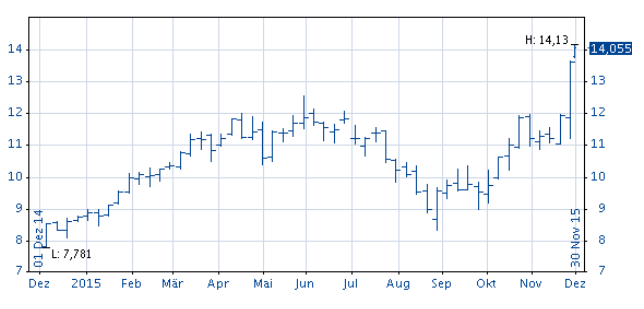 Der Linien-Chart ist die gebräuchliche Darstellungsform für Kurszeitreihen und ist in der Regel standardmäßig eingestellt. Dabei wird die Linie bei historischen Charts an jedem Tag, an dem ein Kurs zustande kommt, weitergezeichnet. Wochenenden und Feiertage bleiben dabei unberücksichtigt. Für Intraday-Charts werden dementsprechend die verfügbaren Intraday-Kurse dargestellt.