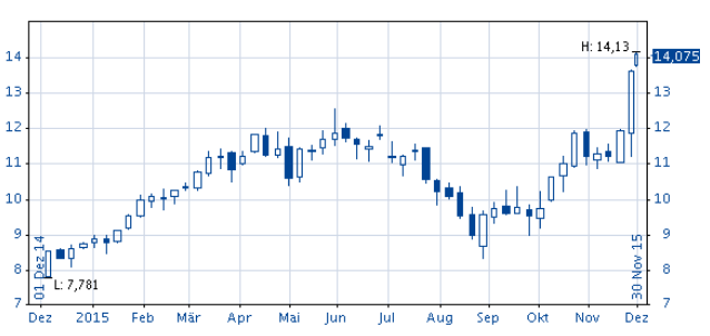 Im Chartcenter stehen Ihnen verschiedene Charttypen für die Darstellung des Kursverlaufs zur Verfügung. Wählen Sie in der Auswahlliste "Charttyp" die gewünschte Darstellung aus: