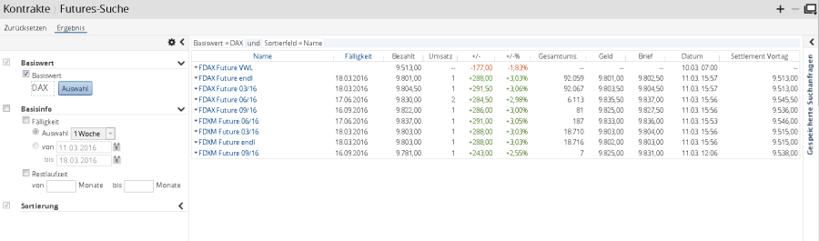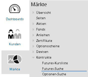 - Wählen Sie dort im Navigator den Menüeintrag "Kontrakte", "Futuressuche".