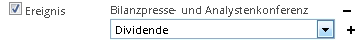 Ereignis | Aktivieren Sie dieses Kontrollkästchen, dann können Sie die Termine nach den Ereignissen filtern. Wählen Sie dazu das gewünschte Ereignis aus der Auswahlliste aus. Beispiel: