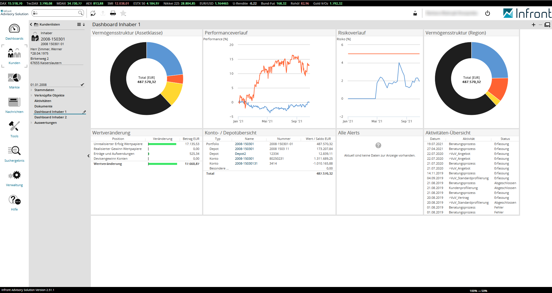 Inhaber-Dashboards sind die Startseite für Inhaber in deren Objektfenster.