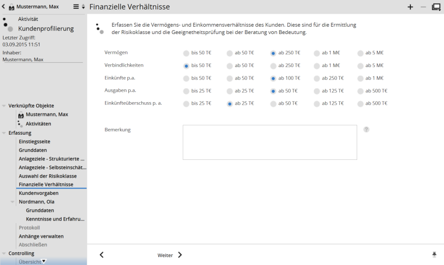 Kundenprofilierung - Erfassung - Finanzielle Verhältnisse