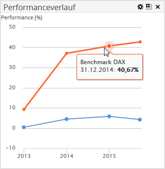 Beispiel: Kundenwidget "Performanceverlauf" mit Benchmark und jährlicher Berechnung