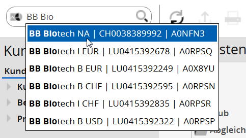 Bei der Eingabe des Suchbegriffs unterstützt Sie die integrierte Live-Suche. Anhand der eingegebenen Zeichen erscheinen diese Vorschläge in einer Popup-Liste. Dort können Sie per Mausklick oder über die Pfeiltasten der Tastatur den passenden Vorschlag auswählen und so direkt das Objektfenster des ausgewählten Objekts öffnen.