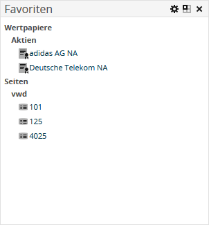 Das Marktdatenwidget "Favoriten" zeigt Ihre favorisierten Wertpapiere und vwd-Seiten an.
