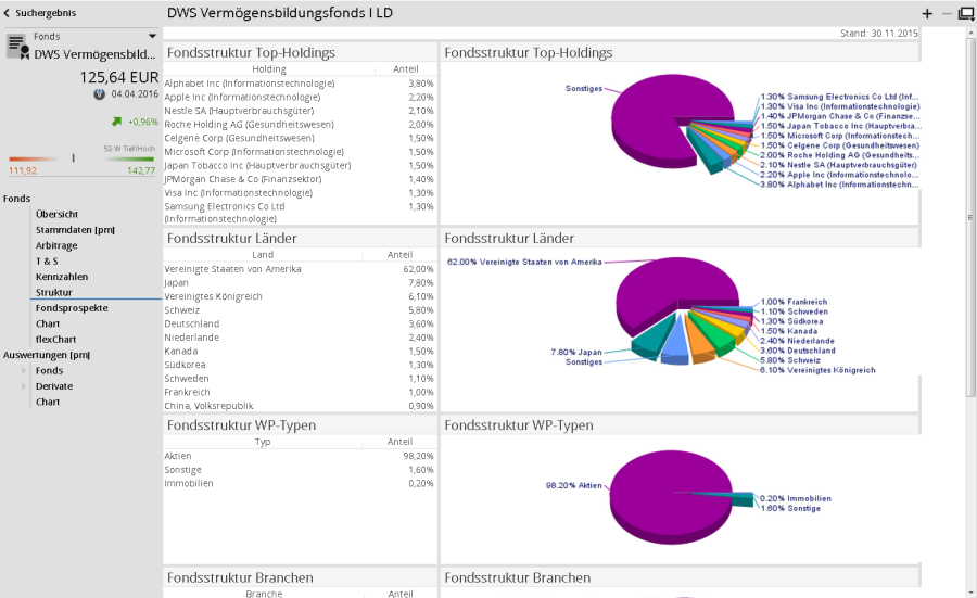 Für Wertpapiere vom Typ "Fonds" finden Sie im Wertpapierporträt den Menüeintrag "Struktur".
