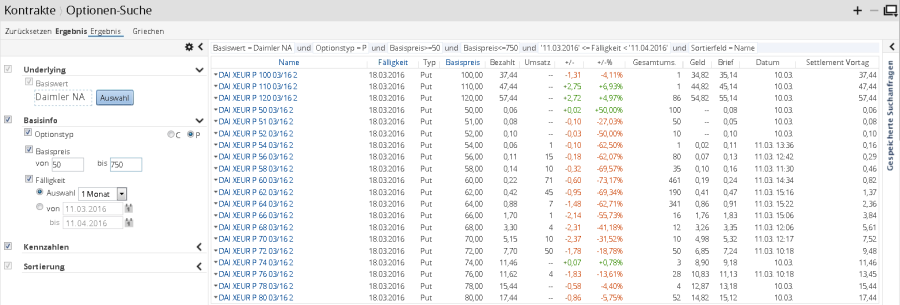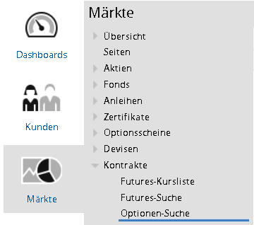 - Wählen Sie dort im Navigator den Menüeintrag "Kontrakte", "Optionensuche".