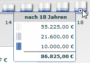 Das Diagramm zeigt auf einen Blick die Entwicklung von Anlage- und Sparbeträgen sowie Wertzuwachs.