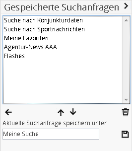 Die vorgenommenen Einstellungen der Suchparameter der Nachrichtensuche können Sie speichern. Haben Sie Ihre Suchparameter optimal konfiguriert, so gehen Sie wie folgt vor, um diese Konfiguration zu speichern: