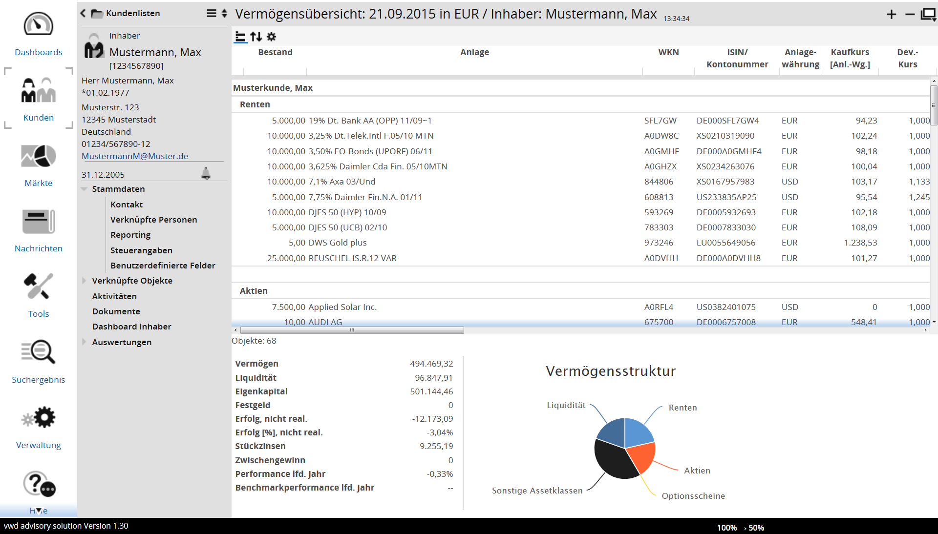 Die Spalten entsprechen den Spalten im Infront Portfolio Manager, auch ggf. vorhandene Daten in Fußzeilen sind verfügbar.