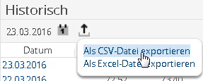 - Wählen Sie im aufklappenden Menü des Icons den Befehl ALS CSV-DATEI EXPORTIEREN.