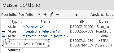 Wertpapier aus Musterportfolio verkaufen