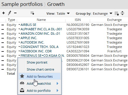 Add securities to favourites