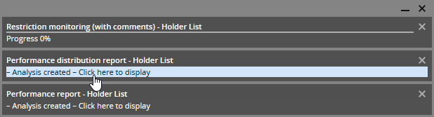 In the message window that appears, you see the analyses or the progress of the running analyses. You can open completed analyses by clicking the corresponding entry.