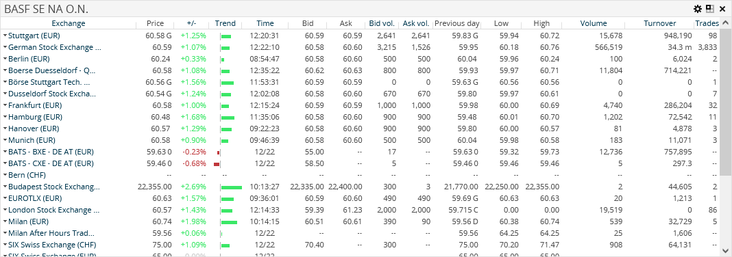 By clicking a venue in the "Trading venue" column, you go directly from the work area to the corresponding security profile with this quotation.