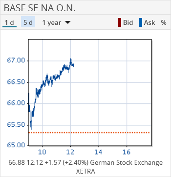 Chart window | In the chart window, the price is displayed as a line. Below, you can see the current price with time, absolute and percentage change as well as the trading venue. Clicking the chart window opens the Chart Center for this security, where you have many more options for technical analysis. |