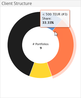 Point to a segment in the doughnut chart to see the name of the segment, the share in percent and (in brackets) the number of portfolios in a segment.