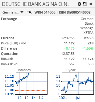 The "Compact quote" market data widget shows all important information for the selected security at a glance: