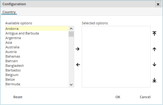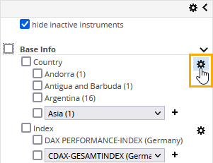 You can configure search parameters that contain drop-down lists individually. Examples of such search parameters are trading venues, countries, currencies, issuers or sectors.