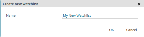 - Enter a name for the watchlist in the "Create new watch list" dialogue window that appears.