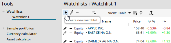 This creates the watchlist with the name you specified. Now you can add securities.