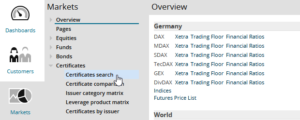 You want to purchase a Commerzbank knock-out certificate (call) on the DAX with a strike of 7500. To filter the large amount of certificates and find the right security: