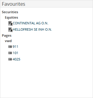 To find out how to mark securities and pages as favourites, see the section Favourites.