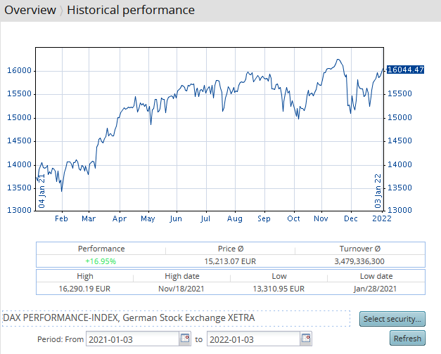 Search for the desired security ("DAX XETRA" default setting) and set the relevant analysis period.