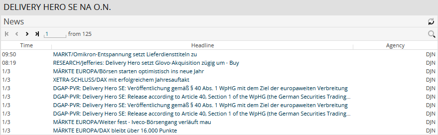 The currently incoming news for this security appear at the top of the list with their headlines. If necessary, select the interesting news to read them.