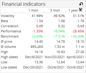 In the "Financial indicators" area, you can find an extract of the most important financial indicators. For the periods "1 month", "3 months" and "1 year", you can see the following financial indicators in detail: