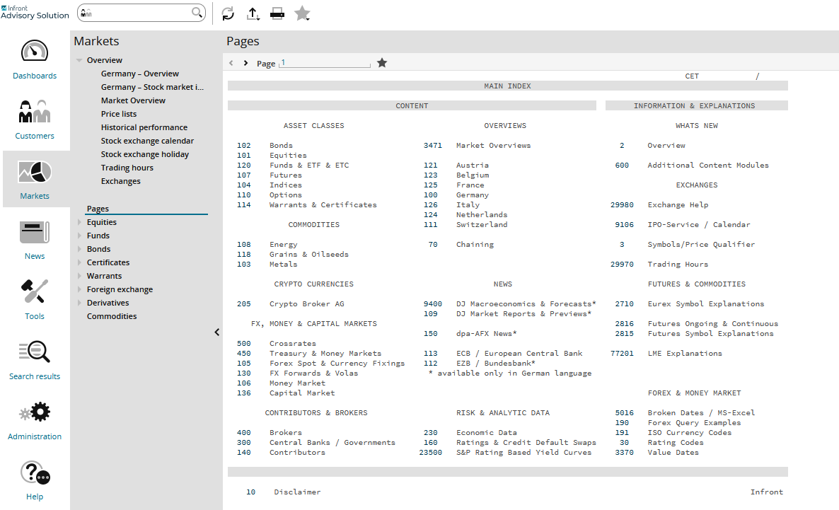 The pages give a quick overview of the market. Comprehensive and, above all, perfectly structured financial information is available to you at all times via the simple navigation.