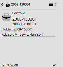 The portfolio view shows a corresponding profile below the navigation pane toolbar. The following information is shown, if available: