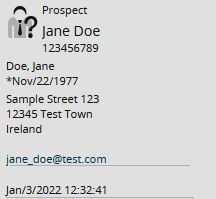 In the prospect view, the profile of the prospect is shown below the toolbar of the navigation pane. The following information is shown, if available: