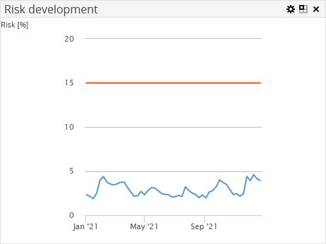 The "Risk development" client widget shows the development of the holder's risk over the course of time. The vertical axis shows the client's risk percentage in the specified interval.