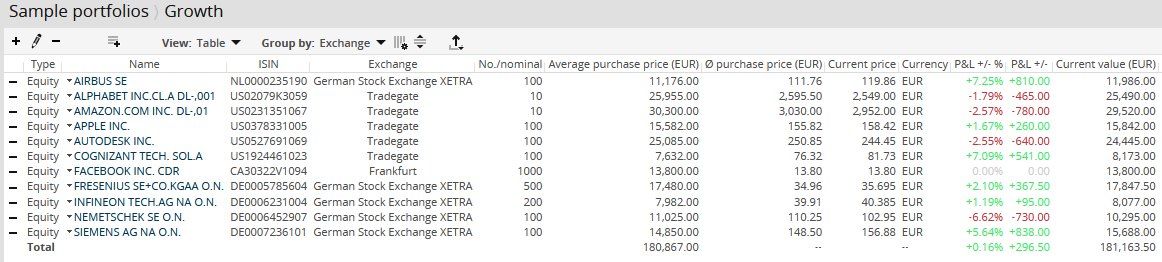 In your (virtual) virtual sample portfolio, you manage your securities positions.