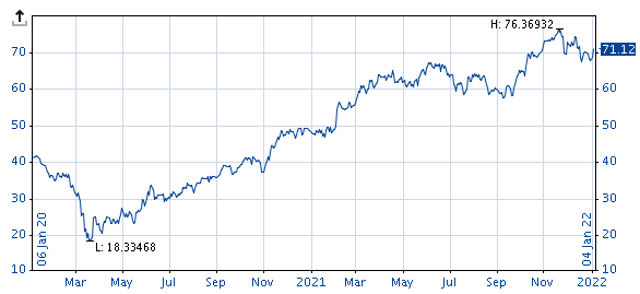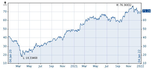 The line chart is the most common display form for price time series, and is usually set by default. The line for historical charts is continued every day, showing realised prices. Weekends and holidays are disregarded. For intraday charts, the available intraday rates are displayed accordingly.