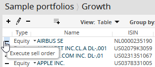 - In the model portfolio, select the "Execute sell order" icon in the row with the security you want to sell.