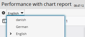 - Open the menu with the defined languages in the toolbar of the report.