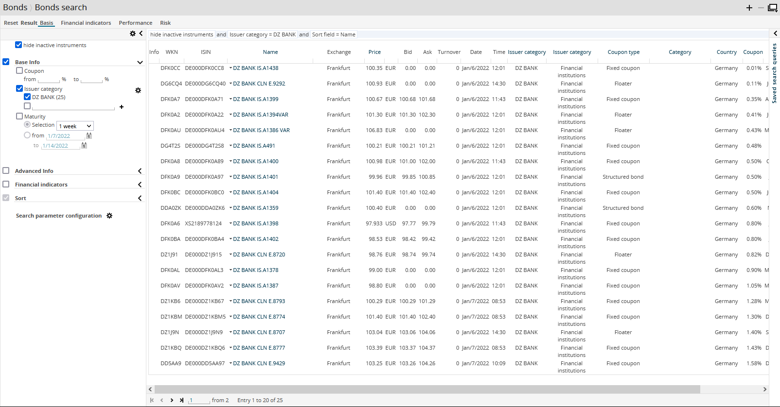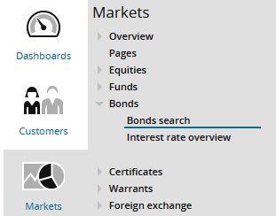 - There, select the "Bonds", "Bonds search" menu item in the navigation pane.
