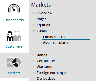 - There, select the "Funds", "Funds search" menu item in the navigation pane.