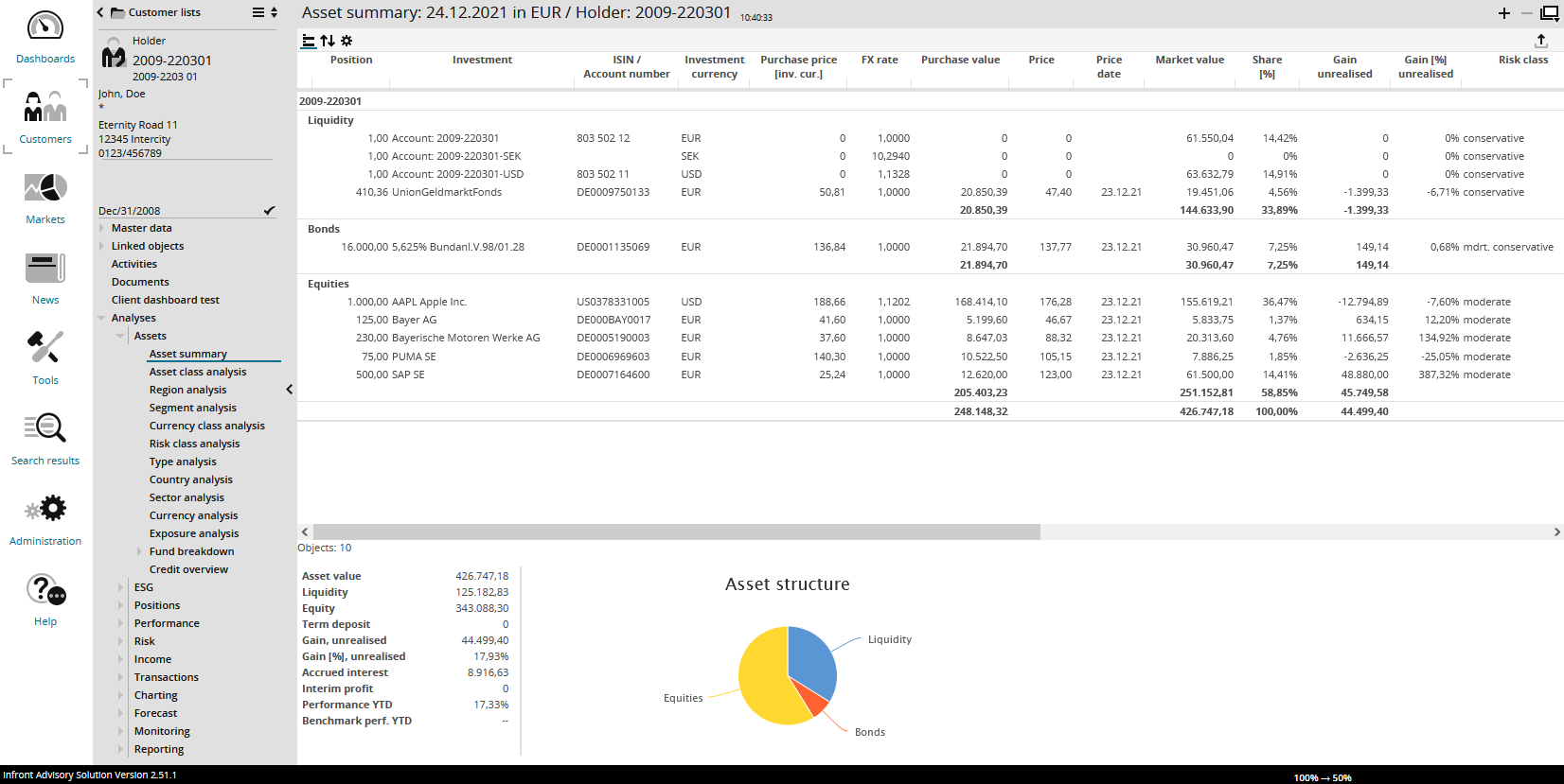 These changes are not permanent. When logging in to Infront Advisory Solution the next time, the default tables as configured in Infront Portfolio Manager are shown.